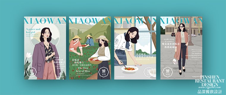 餐飲品牌形象就是對餐飲品牌內涵圖形化,而其中靈魂之所在就是品牌LOGO的設計。餐飲品牌logo的設計和其他行業有明顯不同,餐廳的logo設計首先應體現餐飲的品類特征,讓顧客一看就知道是做什么品類的餐廳,一目了然,一見如故。其次,餐飲品牌的logo還應該體現餐飲的品牌核心文化,是餐廳經營哲學的圖形表達。以LOGO為核心,我們將餐廳所有的視覺都統一在一個文化內涵中,一個視覺體系里,如此構成了餐飲的品牌形象視覺系統。具體囊括了四個方面:餐廳的導視系統設計,與顧客接觸方面有收銀指示牌,桌位銘牌,服務員的胸牌,包間指引,包間銘牌,安全提示,禁煙標識等等;利于后廚運營效率的導視,調料臺上各種標牌,后廚物品擺放的標牌等;餐廳的物料應用系統,如簡易菜單,大本菜牌,點餐紙,訂餐名片,打包套裝,牙簽筷套;餐廳的廣告形象,如墻面廣告畫面,對外廣告畫面,餐券優惠券,主題海報等等;餐廳的軟裝及美術陳列,這方面是餐飲行業獨有的,如主題插畫,主題人物或吉祥物雕塑。品深餐飲設計所策劃設計的南小婉湘菜餐廳,就做了一套完整的主題插畫,視覺效果獨特且符合品牌調性,讓很多顧客過目難忘。