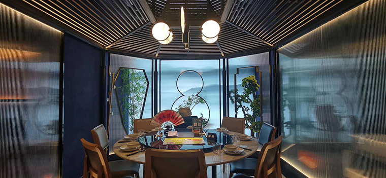 在品深餐飲全案設計中,餐飲空間設計對燈光設計要求很高,燈光對餐飲空間環境塑造起著非常重要的作用。品深餐飲空間設計通過燈光設計可以塑造出不同的用餐氣氛,如明亮歡快的現炒快餐廳、溫馨浪漫的西餐廳、復古典雅的廣式茶樓、質樸自然的湘菜土菜館等等。高亮度的空間感覺明亮,使人興奮;低亮度的空間使人感覺壓抑;明暗強對比的空間具有緊張、刺激感;明暗弱對比的空間則放松、舒適。品深餐飲全案設計中,需要根據餐飲品牌的菜系、風味、品牌調性確立相應的燈光設計,塑造符合該品牌特色的就餐環境。同時,通過燈光的色彩、色溫、照度的變化,來突出餐廳核心特色、品牌核心優勢,豐富空間的層次感。
