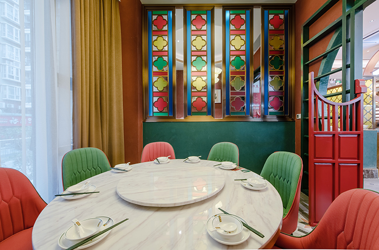 在品深餐飲全案設(shè)計(jì)思維中,餐飲家具設(shè)計(jì)也是全案設(shè)計(jì)的一個(gè)重要組成部分:比如除了基本的色調(diào)要與品牌主色保持一致之外,家具的款項(xiàng)與品牌之間是否有邏輯關(guān)系?家具選用的材料,皮還是布料?既讓顧客坐起來(lái)舒服又能與品牌息息相關(guān)。我們?nèi)覆邉澰O(shè)計(jì)的悅得閑廣式點(diǎn)心茶樓,家具顏色就是與整個(gè)品牌色調(diào)一致的紅和綠,而家具的座椅靠背的圖案造型則與品牌所要傳達(dá)的廣式飲茶文化一脈相承。