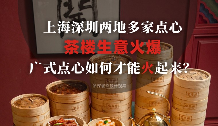 廣式點心茶樓的產品差異化很小,新品牌要突破,應該著重打造品牌定位差異化。品牌差異化直觀體現在品牌的核心文化,形象差異,門店的裝飾設計。比如品深餐飲全案策劃設計的寶粵樓,從老廣味道這一定位入手,讓上海人一眼就感知出很鮮明的廣式文化,整體格調偏市井氣,與點都德、蘩樓的嶺南園林風格截然不同;