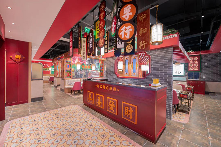 品深餐飲全案策劃設計的悅得閑廣式點心茶樓則從品牌本身出發,從“