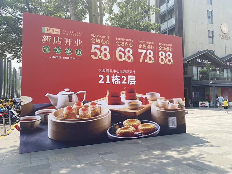 開業(yè)促銷活動(dòng)頭三天必須把客人吸引進(jìn)來(lái),力度要狠,折扣要大。品深餐飲全案服務(wù)的悅得閑廣式點(diǎn)心茶樓,每家新店開業(yè)的頭3天都是5.8折,力度非常大,對(duì)顧客很有誘惑力,吸引力。悅得閑茶樓從2019年11月份到2021年9月的短短2年時(shí)間內(nèi),在深圳已經(jīng)開了10家店,每家店生意都很火爆,非常值得餐飲同行學(xué)習(xí)!