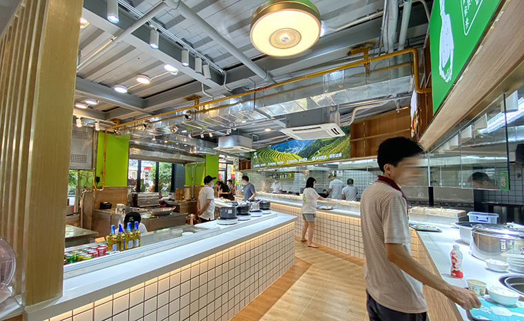 根據這些現狀,品深全案設計提出現炒快餐的概念,將廚房直接搬出來,所有的調味品,食用油都是用國內知名品牌全部展示出來,當著消費者的面,讓消費者直觀看見我們把菜品一份一份現場炒出來。當新鮮的食材、美味的小炒冒著鍋氣,讓消費者自己選,想吃什么選什么,想吃多少吃多少。做到了真正地“美味自選,豐儉由人”。消費者一下就被打動了,被南小碗現炒簡餐深深地吸引了。而品深全案設計又在門店的空間設計上和品牌文化墻上不斷強化“大廚現炒”快餐的優勢,強化品牌的核心優勢。生意迅速火爆,營業額持續穩定,最好的一家門店位于深圳西麗平山村,開業2個月就回本了,盈利非常穩定。