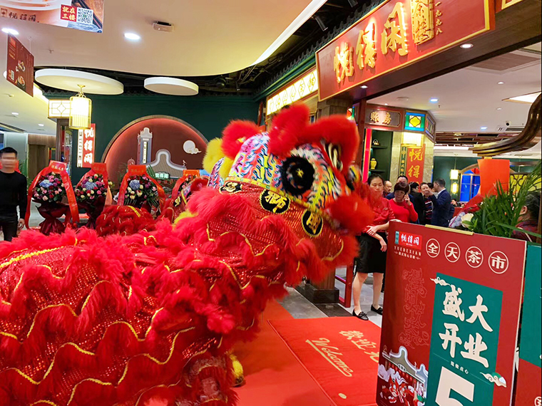 2019年12月25日品深餐飲設(shè)計全案服務(wù)品牌悅得閑廣式點心茶樓南嶺店正式開業(yè),開業(yè)當(dāng)天,顧客盈門,喜慶熱鬧。