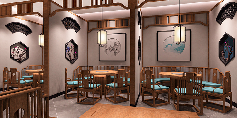 古代的懷舊是用餐空間設計中經常使用的主題。它收集并組織了豐富的歷史和文化特色,再現了歷史魅力,并賦予了食物空間以強大的生命力和吸引力。爬上樓梯后,覆蓋著藍灰色石板的地面是蜿蜒的走廊。環境營造出一種平靜和清晰的感覺。