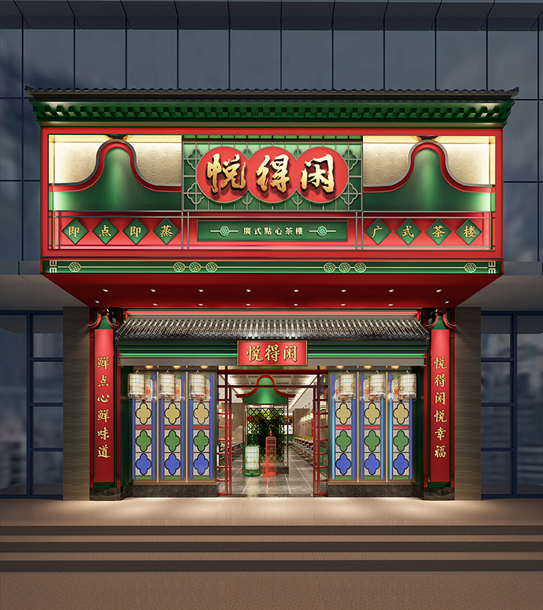 悅得閑廣式點心茶樓空間裝飾設計、茶樓軟裝設計、茶樓空間品牌植入、茶樓平面布局設計、廣式點心茶樓燈光設計。