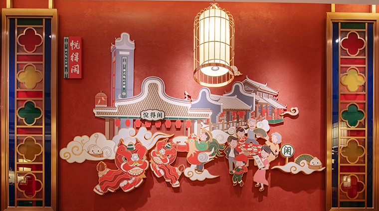 空間的軟裝設計中非常巧妙的植入了品牌的各種軟裝元素,如一家人幸福喝早茶的場景畫面、得閑飲茶的霓虹燈字,悅得閑悅幸福的背發(fā)光字,很好地傳遞了品牌的核心內(nèi)涵;在顧客心智扎下印象,始終牢記悅得閑的品牌形象及內(nèi)涵;個性鮮明地打造出差異化品牌形象,讓顧客產(chǎn)生舒適愉悅幸福地用餐感受,進而持續(xù)傳頌悅得閑品牌。